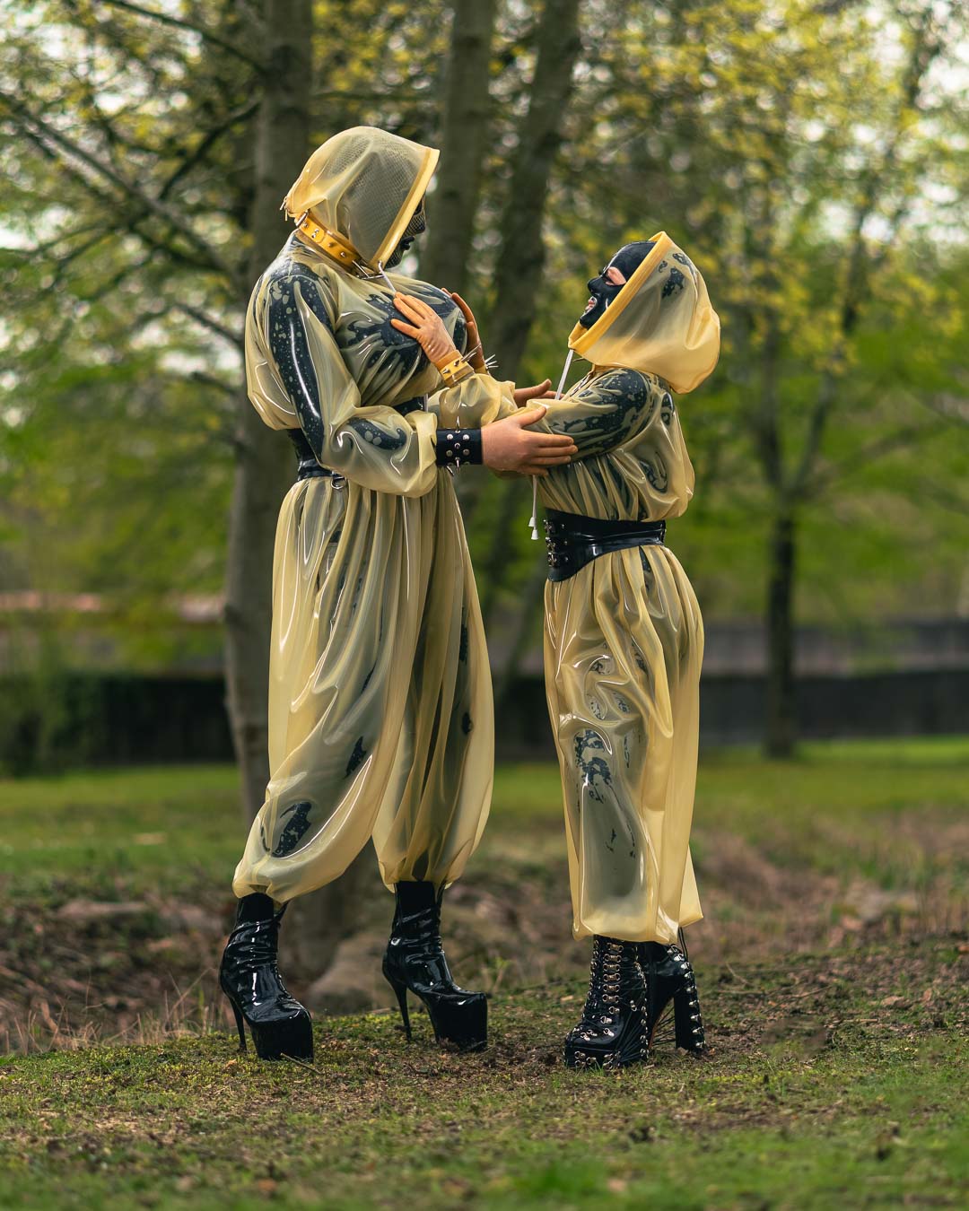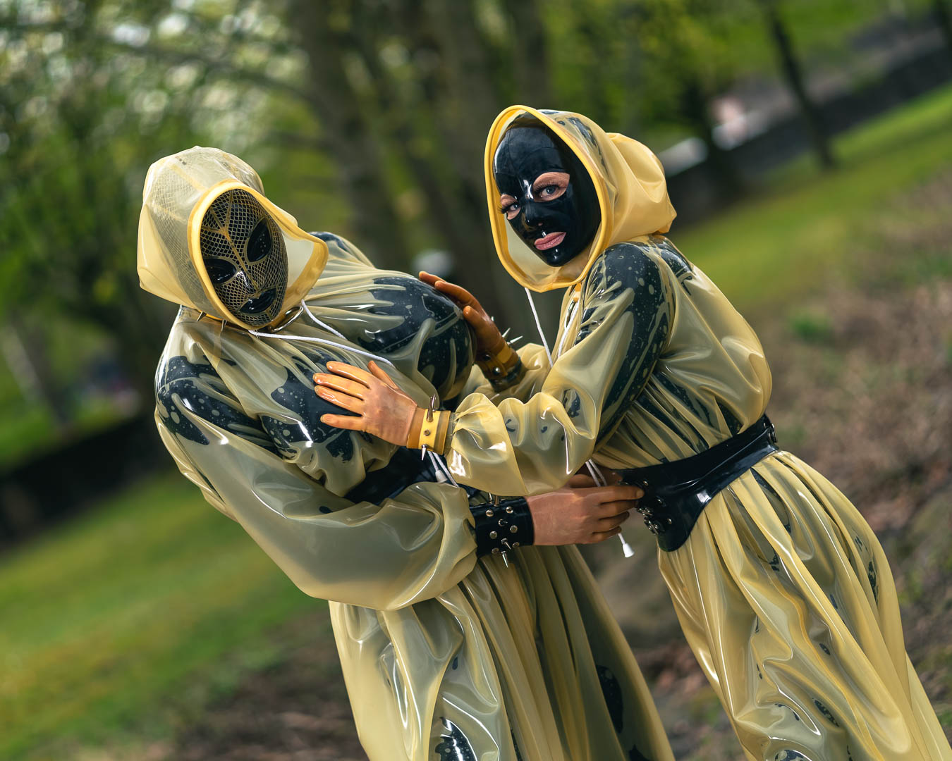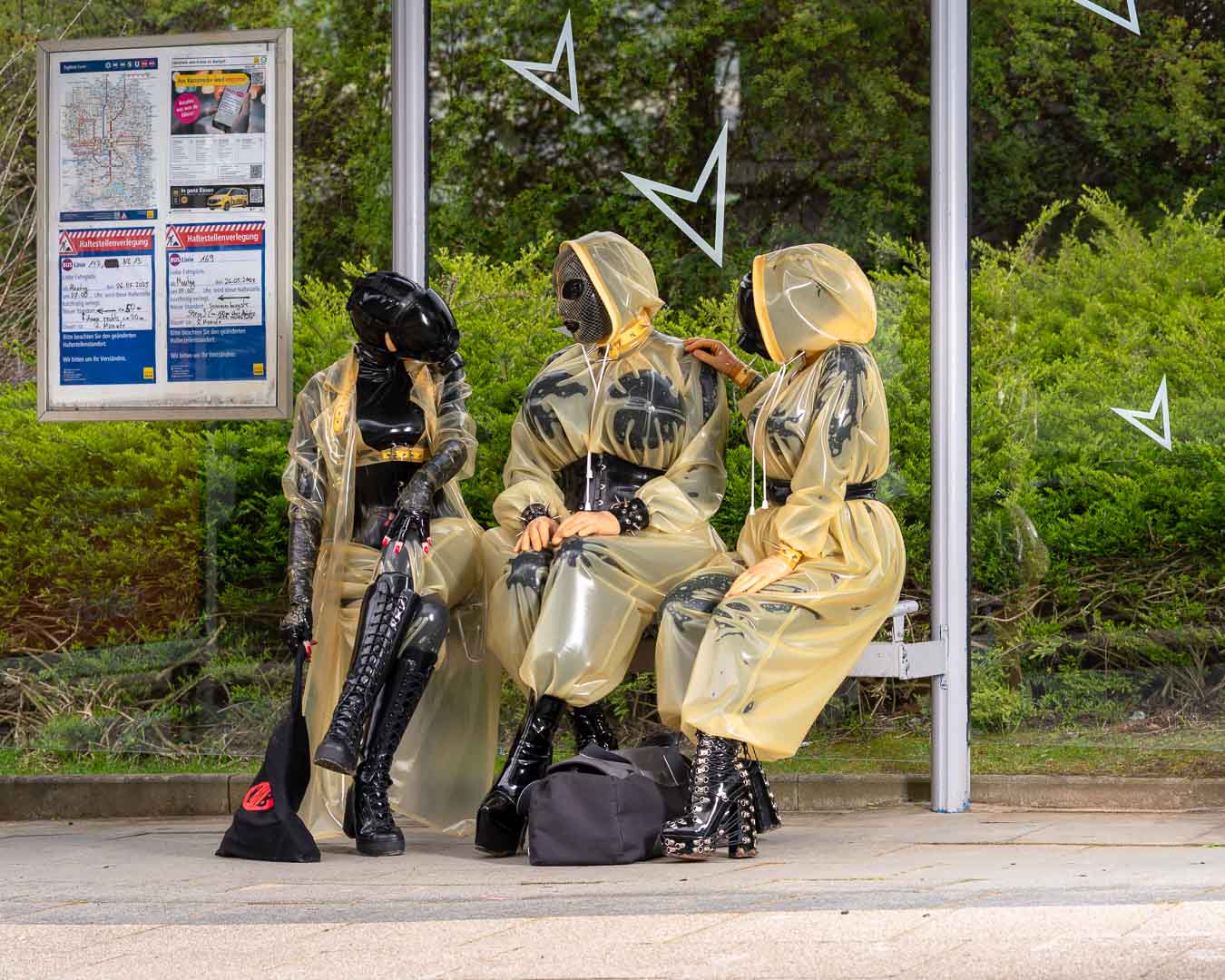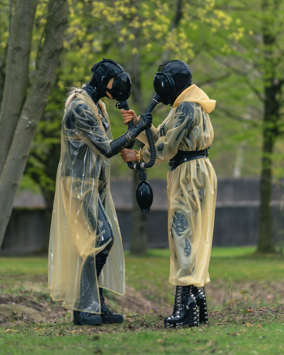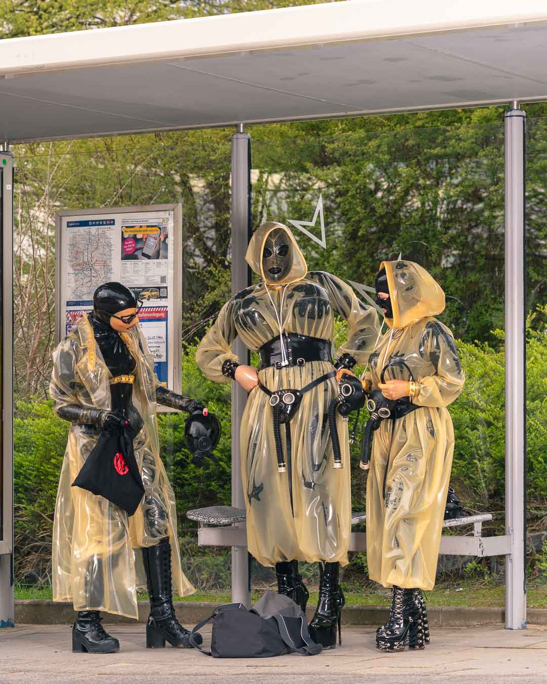 From a fun photoshoot with Caout & Chouc during EFM. They asked to do some photos with Fetish Erotica in layers of transparent over black latex. It was a blast and the bus never arrived.