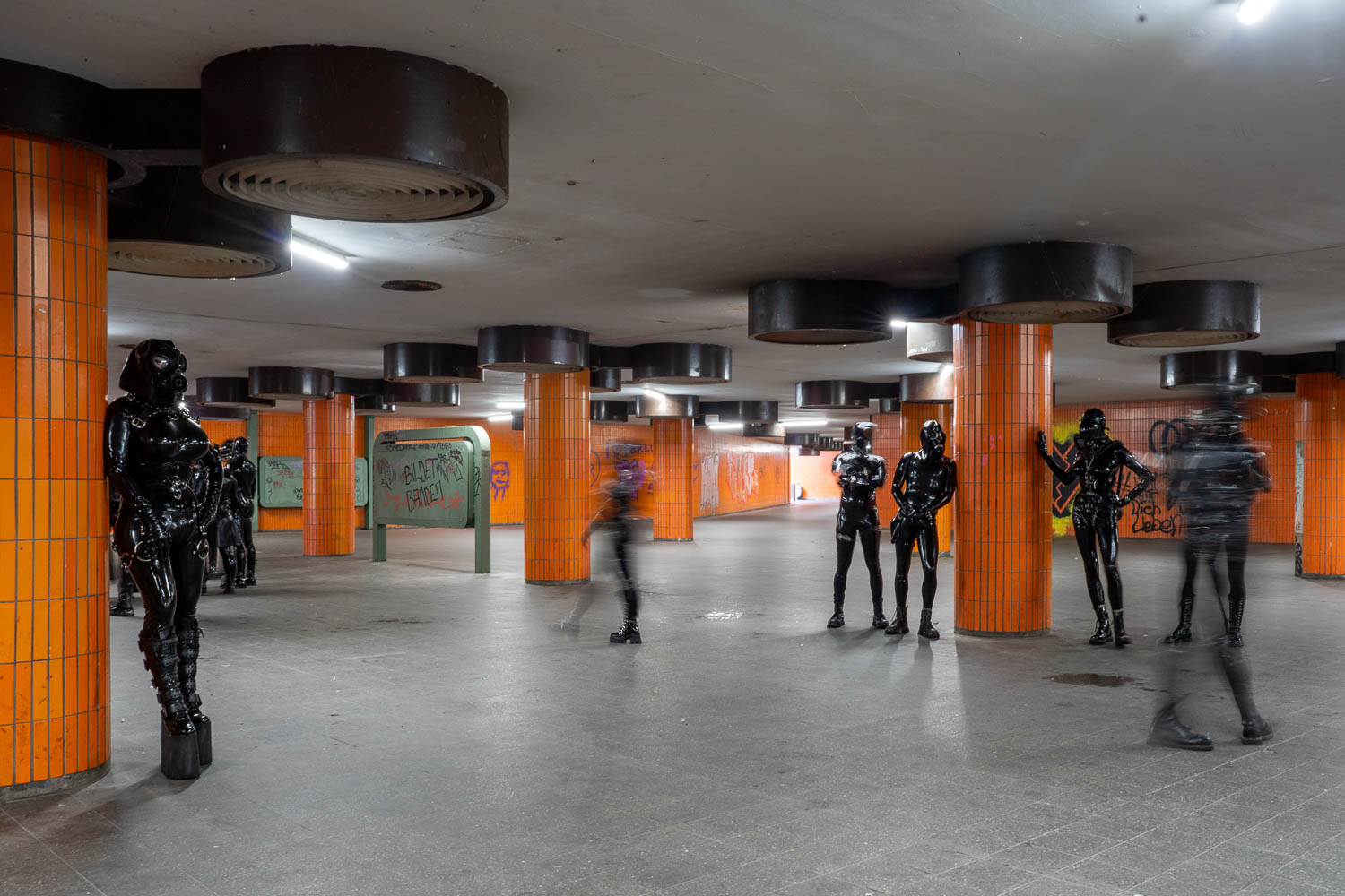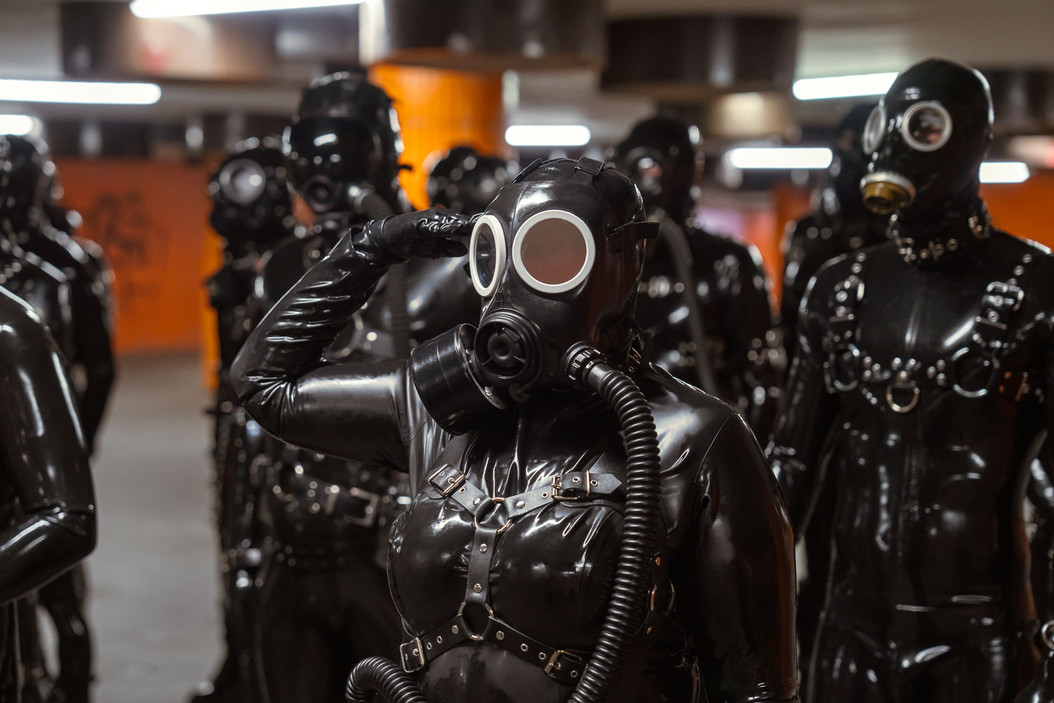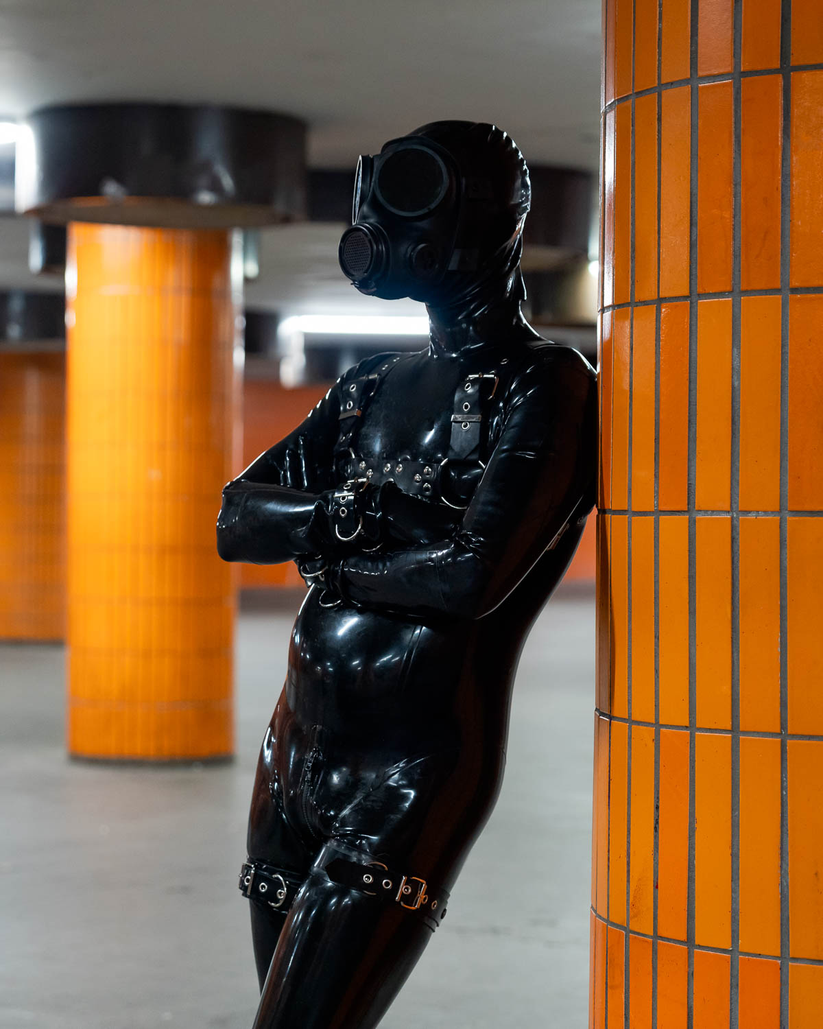 Where I participated in the Gimp Army during EFM, it was time to shoot some of it myself. The once iconic Berlin underground station, which featured in many shows and magazines, has sadly been heavily vandalised, and its iconic lighting replaced by fluorescent tubes. It’s not every day that you see an army of gimps.